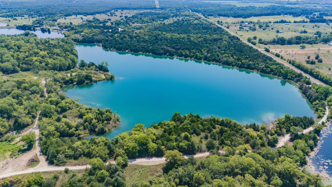 One of the standout features of the ranch is its 38 acre lake, offering incredible waterfront views. Notably, the lake is a gradient quarry down to a depth of 55 ft. The property is composed of approximately 60% tree-covered areas, 30% pastureland, and 10% native brush, providing a diverse landscape suitable for various activities. The ranch is low-fenced and has well-maintained gravel roads and trails that provide good access throughout the property. The land offers numerous potential development sites for building, as well as the opportunities offered from the rock and sand operation onsite (currently used for development of property). Furthermore, all owned minerals on the property will convey.