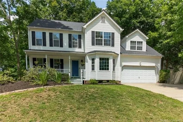 Come Home to a 4 Bedroom 2.5 Bath Beautifully maintained home on a delightful lot, wooded views, seclusion and serenity! Floor plan is ideal for entertaining. Large open kitchen w/island and breakfast area w bay window leads into light filled family room overlooking deck and woods. Second floor Primary bedroom has 2 walk-in closets and ensuite bath, soaking tub, dual vanities and shower. Large bonus room great for 4th bedroom, playroom, craft room or media room. Park like peaceful Private back yard. Walking distance to community pool. Centrally located to stores, restaurants and highways. NEW ROOF. NEW A/C SYSTEM. FRESHLY PAINTED INTERIOR THROUGHOUT. Move in ready!
