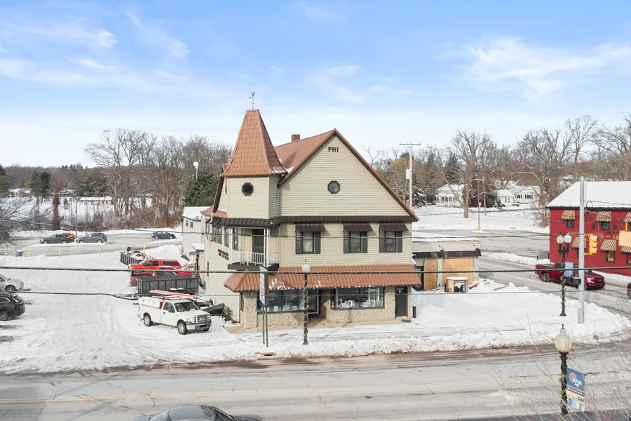 Fantastic and sought after NE location in the heart of Comstock Park with easy access to highways and Alpine Ave. commercial corridor. Highly visible commercial building on the corner of West River Dr. and Lamoreaux Dr. with large traffic counts at slow speeds. 2 apartments upstairs with separate utilities and entrances for additional income. Entry opens to a large showroom floor with a reception area. Six separate offices, an office kitchen, half bath, and loads of storage complete this level. The second floor provides a 1 bedroom/1bath apartment and a 2 bedroom/1 bath apartment. The third floor has hardwood flooring and has the potential to be converted from storage into a 3rd apartment(Plainfield Township approval would need to be obtained). A full basement, new flat roof, and an incredible new investment opportunity are just some of the extras to be found in this one of a kind offering!