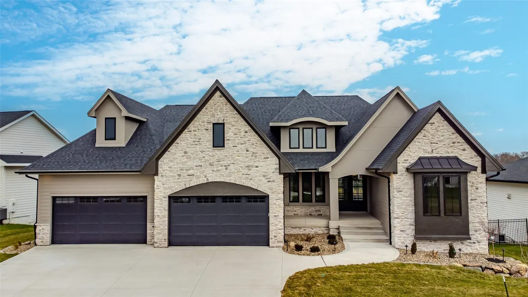 Experience luxury living in the exclusive Shadow Creek community with the NEW Oak Brook Plan from KRM Development. Designed for both elegance and comfort, this home offers 4 spacious bedrooms and 6 baths across a walkout lot with sweeping pond views. From the moment you step through the double doors, this home makes an impression. The entry with its tray ceiling and beams sets the tone, opening into a soaring great room with vaulted ceiling, rich beam, a cozy gas fireplace, and walls of windows that pour in natural light. The gourmet kitchen is a chef's dream with top-tier appliances, a huge walk-in pantry, and effortless flow to the dining area and screened-in covered deck - perfect for evenings hosting family or friends. Retreat to the private primary suite with spa-like ensuite featuring a soaker tub, tiled shower, and expansive walk-in closet. An office, drop zone, laundry room, half bath, and additional vaulted ceiling bedroom with ensuite complete the thoughtful main-level design. The finished lower level is perfect for gatherings with a large family room, wet bar, two guest bedrooms, 3 bathrooms and abundant storage. With a 4-car garage and refined finishes throughout, this home blends sophistication with comfort. To further ensure your comfort behind the beauty you'll find; ZIP system, Advantech subfloors, BIBS system, and Form-a-drain just to name a few. Come check out the KRM difference!