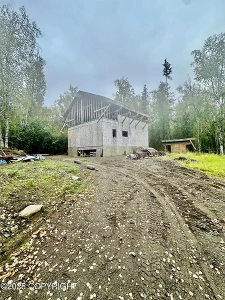 This property features 1.02 acres off the back side of Robinson Loop Road. This unfinished home features 1152 sq ft w/768 on man level and 384 on upper level (borough records). Home has sauna tube foundation. Seller states the previous owner disclosed there is a fully installed and never been used septic plumbed to the house. Power runs along Elcon Circle (see HEA map). No CC&R!