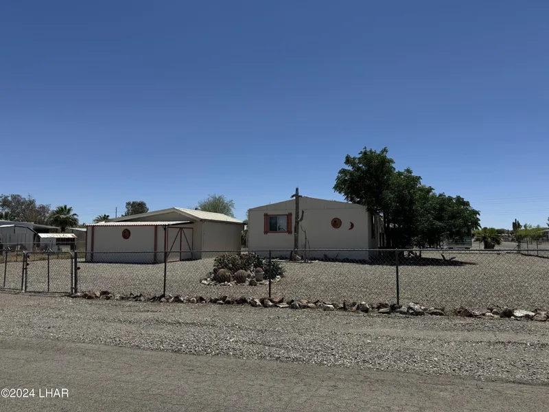 Great Opportunity to own your own home in Salome, Arizona. 1978 24x44 2 bedroom, 2 bath manufactured home on a large 1/4 Acre corner lot. Lot is fully fenced and landscaped. The home comes mostly furnished. Inside you will find a well cared for home with large living room, dining area and kitchen. Primary bedroom has a private bath with walk-in shower. Bedroom 2 is roomy and has a large closet. Guest bath has been remodeled and is very inviting. Unique evaporative cooling system plus a mini split for those warmer days. 20x20 Out building houses the 3rd bath, laundry area and a workshop and large pantry/storage area. Additionally there is a garage for the side x side included with the sale.