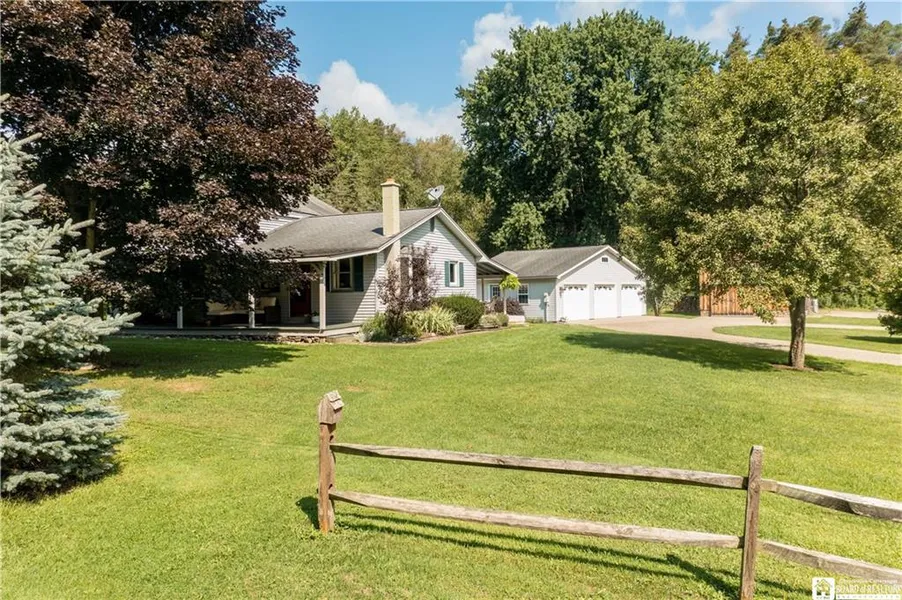 Welcome to country living in this beautiful, well maintained, Lawson Rd property! Enjoy this 3 bedroom, 1.5 bath home situated on a 3.5 acre lot in the Southwestern Central School district with newer 3 car garage and 2 story barn. Enter the home on the circular driveway that extends to the barn. First level features living with hardwood floors, spacious dining room with bay window and woodburning stove. Dining room is open to the large country kitchen with Corian top island & Omega wood cabinetry...appliances included. Nice family room addition has lovely new flooring and atrium door to the back deck & pool. First floor master bedroom has half bath. Update full bath. laundry room and office are also on this level. Upstairs are two more good sized bedrooms. Newer three car garage and 2 story barn are huge plus...both have water and electric (underground). Relax on front covered porch, the side covered patio or the back deck with pool and enjoy the view of the private wooded back yard! Also pear & apple trees, red & black raspberry bushes. Truly a property to be enjoyed!! Delayed negotiations on Tuesday, August 30, 2022 at 4:00