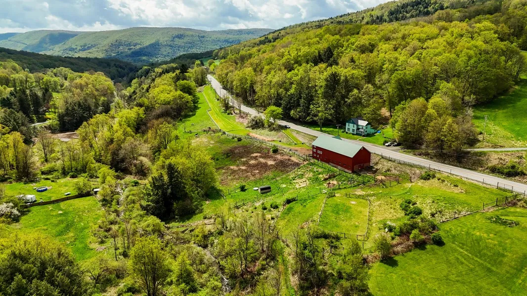 Award-winning mini-farm in the CATSKILLS with unlimited potential! Four spectacular-view acres in the rolling hills of Walton, NY with a restored 1820's dairy barn in EXCELLENT condition which over the last 20 years has been renovated to the gem it is today. Foundation was redone in 2008 to reinforce the structure. It has upgraded 220 electric service, brand new metal roof (2020) and a fresh coat of paint! It sits on 4 acres of pasture which have been divided into seven paddocks. Each paddock area has frost-free water hydrants with 8 foot high-tensile fencing and two animal sheds. There are eight interior stalls plus a feed room with tongue and groove hemlock. The barn has a well and septic with a bathroom downstairs and a loft area on the 4th level perfect for a living space. Currently rented for $1,800/month, paddock area, fencing and interior stalls recently updated. This property was awarded the NYS Barn Coalition's Barn Preservation Award and was voted Delaware County's 2002 Tourism Property of the Year. This is not a drive by!! You MUST go inside to appreciate this amazing BARN located less than 10 minutes from downtown Walton, you are minutes away from two reservoirs (Pepacton and Cannonsville) and the east and west branches of the Delaware River with access to a multitude of outdoor activities including kayaking, fishing, camping, snowshoeing, snowmobiling, cycling and hiking on endless trails. High speed internet available to work and live at this great location. A half-hour to Oneonta, one hour to Cooperstown, 15 min to the quaint hamlet of Franklin, 10 min to Walton for shopping, antiquing, restaurants. 2.5 hours to NYC. LOW Delaware County taxes. Come see what all the buzz is about in the Catskills!