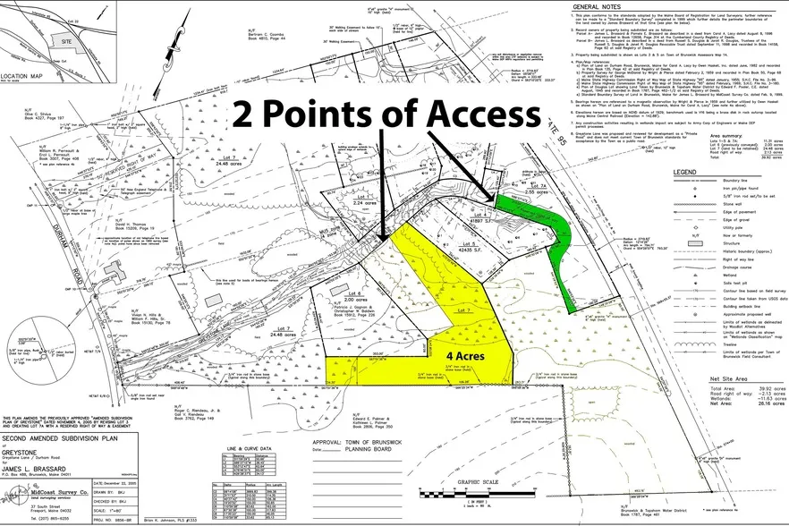 4 acres of Brunswick land in Subdivision with ability to divide with a minimum lot size of .46 acres (20,000SF). Access point to land via Greystone Lane and close to I295. 10 minutes from Downtown Freeport (LL Bean) and more.