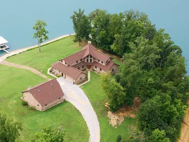 Tennessee Lake home and acreage for sale. Here is your dream home on 4.75 level and rolling acres surrounded on 3 sides by deep water on a point on Norris lake-with a view of woods and TVA land. This is one of the most desirable tracts on Norris lake, with a floating dock and boat hoist. The custom home with Hardy Plank siding and stone is beautiful and very well maintained with many upgrades. It boasts three bedrooms (one a "dorm room"), 4 1/2 baths, an office with closet plus another office, library, huge loft, great room that can entertain a dance party, open kitchen with cherry cabinets, corian counter tops and built-in china cabinet and much more. There is a large 2-car attached garage plus a detached 3863 square foot 2-story garage with 3 doors-one tall enough for an RV. So much more-plat and extensive features sheet are available. Nothing has been spared to make this a most comfortable and elegant home and recreation destination. It is approximately 38 miles to downtown Knoxville, but with amenities in smaller towns nearby. Shown by appointment to qualified buyers. Home and detached garage on Lots 1 and 2-2.65 acres-available for $1,350,000. Lots 3 and 4 available for $450,000 AFTER sale of Lots 1 and 2. Ask me for details.