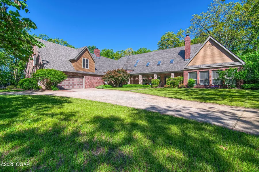 New South Joplin luxury listing is 'a true GEM', nestled into the woods at the end of Emerald Drive, awaits you and your family! This 5 bed, 6.5 bath home is located on a beautiful 3 acre lot with plenty of wildlife and a peaceful, private setting. Amazing and versatile floor plan with 3 bedrooms on the main level each with their own en-suite. Upon entering the foyer, you'll be wowed by the expansive 500 ft great room with brick floor to ceiling fireplace, large windows, and wet bar with wine fridge. Stunning, recently remodeled kitchen with custom cabinetry, large island perfect for entertaining, and plenty of storage! The luxurious primary suite is on the main level and features a fireplace, an adjoining solarium, and an extra room that could work as a sitting room, office, gym, or nursery! The primary bath includes a custom travertine steam shower/sauna and his and her closets. All bedrooms have their own attached full bathroom, plus large game room/5th bedroom. Hidden indoor storm shelter/safe for added convenience and safety. The outdoor spaces make this home an entertainers dream!! Large diving pool with separate hot tub area, pool house with indoor kitchen, full bathroom, covered patio with built in gas grill and fireplace. 4 car garage complete with a pass through garage door, and additional 24x30 shop gives plenty of space for extra vehicles or hobbies! 2x6 construction, whole house water softener, UV, and sterilization system, and new irrigation system on well water. Convenient South Joplin location close to hospitals, schools, dining and shopping. This unique, well built home has all of the features you've been looking for and more. Schedule your private viewing today!