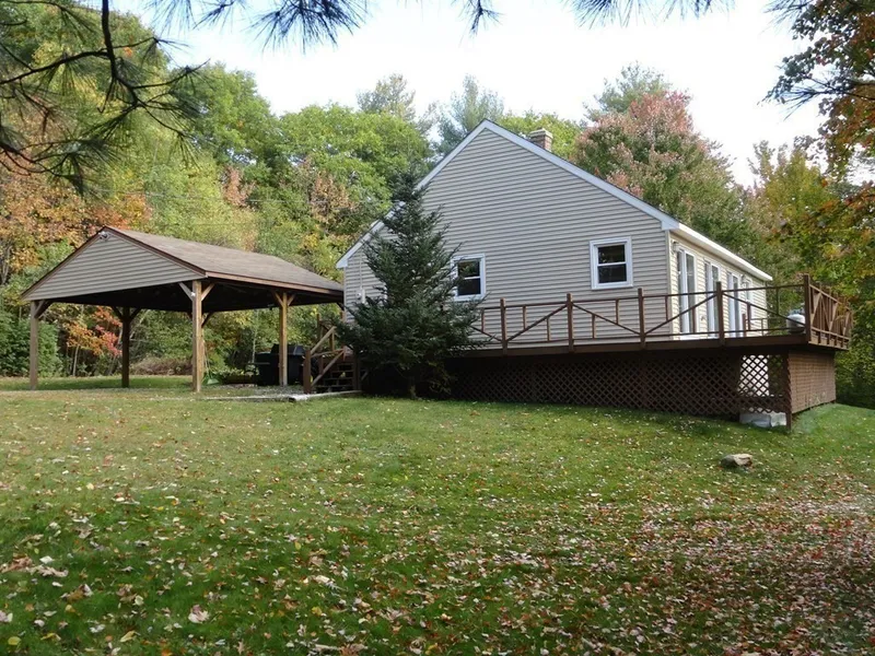 Located near the base of Mount Watatic this contemporary ranch is nestled into its private 4 acre lot which also boarders Route 119. The exterior offers new vinyl siding, wrap around deck, and carport. Plenty of open space to enjoy the stone fire pit. The interior features an open concept hardwood floor living area that includes kitchen, dining area and Living room with cathedral ceilings and Wood Beams. The 3 south facing glass sliders create passive solar that assists the wood pellet stove in creating a warm home. The hardwood leads you to the first bedroom with a double closet. The master bedroom has a walk in closet with wall to wall carpet. Both are serviced by the central bath. The finished basement has two areas. The first is a 13 X 9 carpeted room with a closet that could be used as an office, play room or what ever your needs be. The second is carpeted 27 X 12 family room with wall mounted TV, Multiple offers , best and final have to be in by noon 10/06/2020