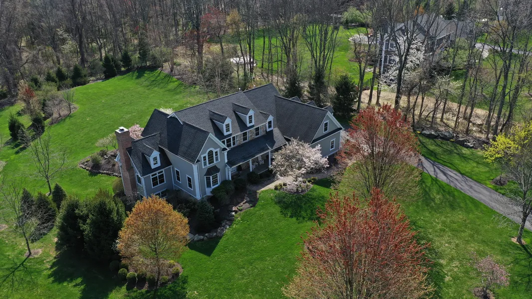 Your search ends here! Welcome to this 16-room home offering 5-bedroom septic, 5 full &1 half bath which includes 4 rooms in the walk out finished basement & a full bath. Once you arrive at the partially stone front home with "hardi-board" like siding & the swing on the front porch, you will feel at home on the 2.05 private acres. The professionally landscaped property surprises you every season with different flowering plants & bushes. Outdoor entertaining is so enjoyable on the IPE hardwood decking with black metal spindles and a built-in area for your grill. Relax while overlooking the private, level backyard. As you enter the front door there is an updated living room with French doors & transom windows, currently used as a music & conversation area. The dining room features hardwood floors, a beamed ceiling, wainscoting & crown molding. An open floor plan from the gourmet kitchen with huge island with breakfast bar with prep sink & separate dry bar, to the sunroom with built in shelves, cabinets & window seat, to the great room featuring a wood burning floor to ceiling fireplace is the hub of this home. down the hall from the 3-car garage or side door there is an office, mudroom/laundry room & full bath with a back staircase leading to the second level. There you will find 4 bedrooms & a bonus room/bedroom above the garage & loft area just outside the primary suite which has 2 walk in closets, full bath & sitting room. The Princess suite also has a full bath.