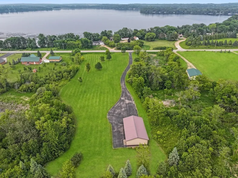 Spacious storage shed on over 4 acres conveniently located across from Lake Irene and just minutes to the Lake Miltona public access. The long tarred driveway leads to a well-positioned 32'x 50'storage shed, ideal for storing boats, lake toys, and more! The shed features a durable concrete floor, electricity and 3 doors: 18 x 12 main door, 8 x 8 side door and a service door. The generously sized driveway offers plenty of room for turning around and maneuvering pontoons, trailers, and other large vehicles with ease. With ample space at the front of the lot, you can easily build your dream home - complete with scenic views of beautiful Lake Irene.