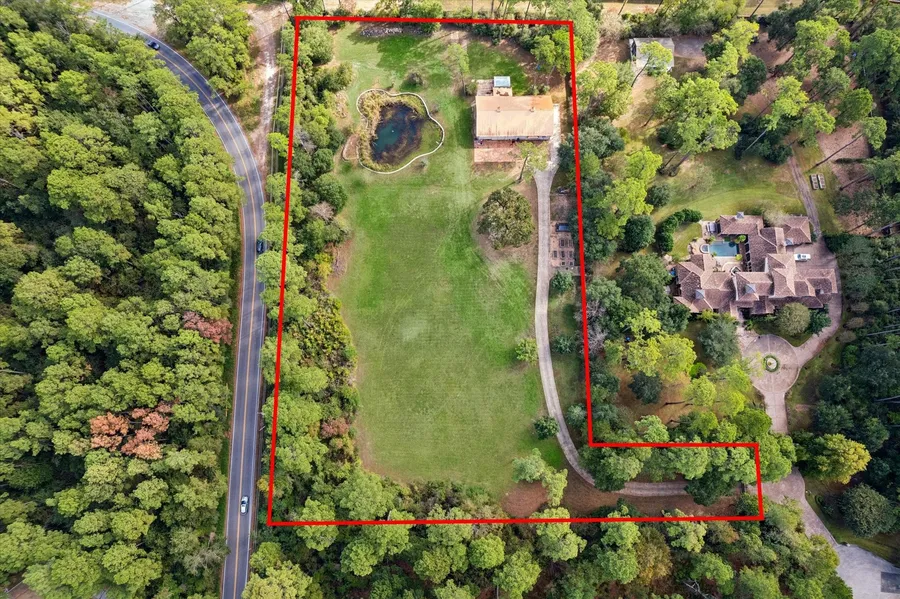LAST RESIDENTIAL LOT in the exclusive gated neighborhood of Saddlebrook Estates with no previous flooding! Once in a lifetime chance to build your dream home on 4.1 Acre cul de sac lot- CLEARED, LEVELED and READY FOR BUILD. Seller has spared no expense building ASTOUNDING ULTRA LUXE 3690sf fully insulated warehouse with $20K epoxy flooring, 3000 bottle Wine storage with separate AC, guest room, custom kitchen and full bath with washer/dryer and industrial size fans and can fit up to 12 cars. Owners have meticulously used best in class contractors and installed drainage system, driveway, electrical updates, wired for sound & security systems. Sellers have also built greenhouse, 8 raised gardens and added 6 large trees. Private automatic gates in front and BACK of property. Back gate w private drive opens to Hufsmith- perfect for 18 wheeler access. Well and septic on site. 14 ft deep stocked pond with fountain. SEE AERIAL VIDEO AND FULL LIST OF UPGRADES IN ATTACHMENTS.
