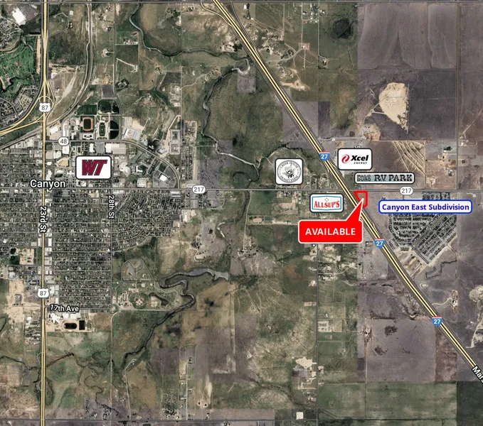 Discover 4.24± acres of premium commercial land positioned at one of Canyon’s visible and high-traffic intersections—the southeast corner of Interstate 27 and 4th Avenue (West State Highway 217). This tract offers exceptional visibility, strong traffic counts, and expansive frontage along the main roadway leading directly to Palo Duro Canyon State Park, one of the state’s most popular destinations.