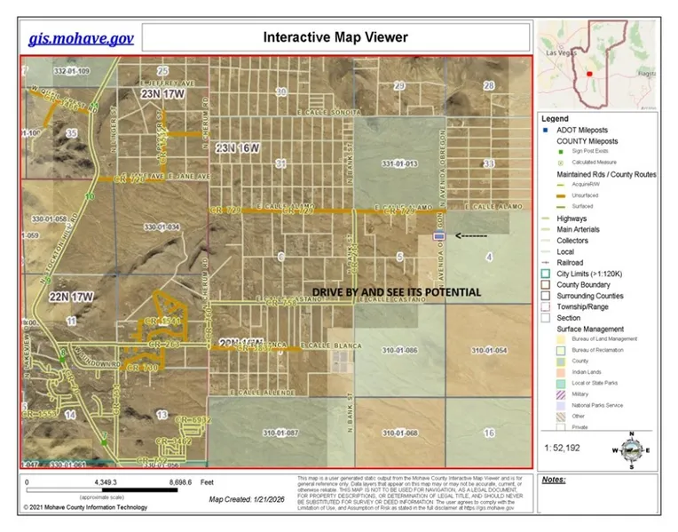 4.26 acres located in Kingman, AZ with open desert views and ample space for a variety of uses. Zoned Agricultural/Residential and situated adjacent to BLM land, offering a sense of privacy and open surroundings. The Sunward Ho Ranches area provides a secluded setting while remaining within reasonable proximity to the N. Stockton Hill Road corridor and Kingman amenities. APN 310-02-032. No flood zone. Parcel next door 033 also for sale if interested. It is conveniently located approximately 45 minutes from Bullhead City and the Laughlin area, with access to Colorado River recreation nearby for all your water activities.