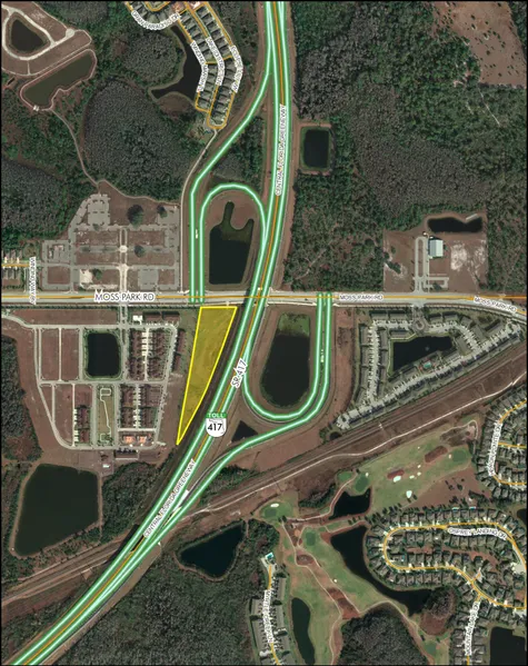 Research Parcel InformationLocated at the southwest corner of the Moss Park Rd and SR 417 interchange in southeast Orange County, approximately 2 miles south of the Beachline Expressway and approximately 3 miles east of Orlando International Airport.