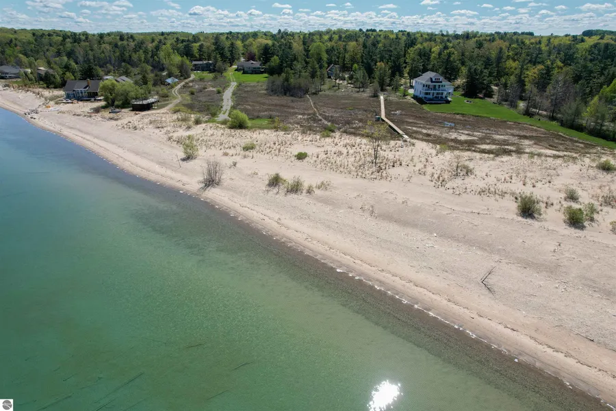 Stunning Grand Traverse Bay waterfront! Enjoy summer days and nights on your own 123' of sandy beach. Features beautiful sunsets and a gorgeous vista of Old Mission Peninsula. The property transforms from a hardwood forest to the sands of the beach as you traverse through the lot. In the middle of the parcel sits a solid, 800 sqft A-frame built in 1964 with two bedrooms, one bath, and full kitchen. The house has been meticulously kept and is great for a quiet Up-North getaway. There is also an additional small building with bunks for sleeping and a garden shed.This lot is also perfect for any new build to create your own cottage, year-round home, family compound, or many other possibilities! Only a 20 minute drive from Traverse City and a 5 minute drive from all the amenities of Elk Rapids.