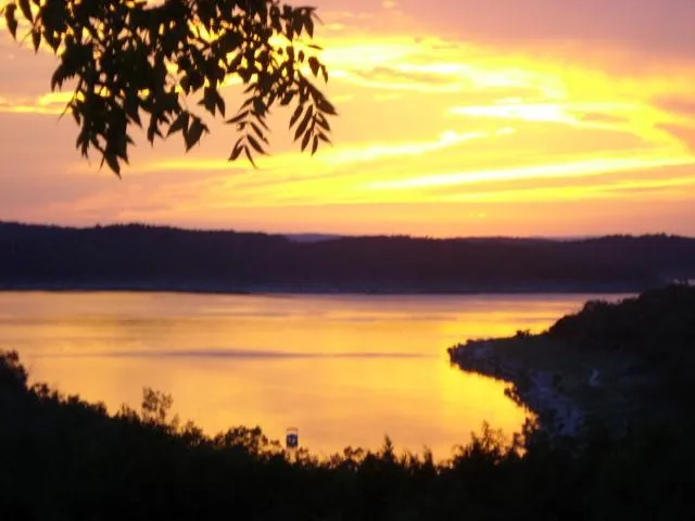 Unique property of 4.38 ac w/three cabins overlooking Bull Shoals Lake. Main cabin is 1450 sq ft w/2 bed 2 bath, UPDATED: new kitchen, pantry, one new bathroom & one remodeled, new water heater, tile flooring and paint. Kitchen features island/bar w/walnut butcher block top. New appliances. Good storage. Ceiling fans. Guest cabins have full bathrooms & one has kitchenette. Cabins also have their own electricity, hot water heaters, septic & propane tank. A fourth cabin w/ water & elect. is used as a tool room. Apart there are two storage sheds & a 24x36 two-sided carport w/ gravel base. New well pump(420' deep) w/top of line water softener. Road base driveway. Short walk to cove through property with 528' on Corp. property bordering lake. NICE boat launch LESS than 1/2 mile. Branson, Mo.(entertainment complex of live shows, casinos, Silver Dollar City,quaint shops) and Victorian Eureka Springs, Ark. are a scenic hour away. Several very good building sites, apart from existing cabins. Property is full of walnuts , wild plums, wildlife, with endless sunsets and gorgeous views.PRICED BELOW APPRAISED VALUE!