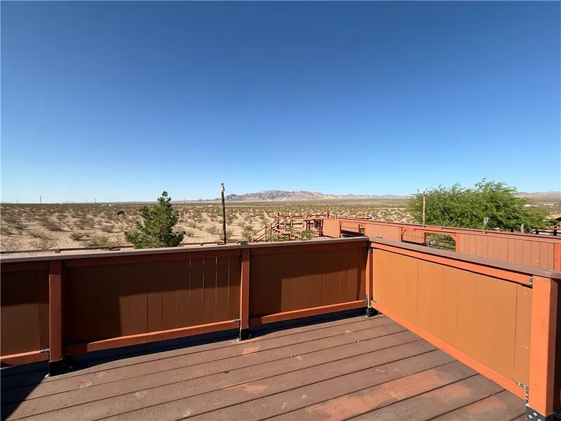 An Oasis in the Desert And That s Just the Beginning! This incredible 5-acre parcel offers everything you need to start living your dream right away. Featuring electricity, a shared well, and septic system, the groundwork is already in place for comfortable desert living. Included with the property is a 1-bedroom travel trailer, perfect for weekend getaways or as a place to stay while building your dream home. A 2100 sq ft concrete slab foundation has already been poured with some plumbing installed and county-approved home plans are available from the seller. The entire property is fully fenced with sturdy wood pillars set in concrete, with additional inner fencing for pets, gardens, or other uses. Outdoor living is a breeze with multiple covered decks, two of which are connected by a charming bridge ideal for watching breathtaking desert sunsets. Covered parking as well Entertain guests in the spacious covered dining area, complete with built-in table and benches, electricity, and a grilling station. There are also cozy, private seating nooks throughout the property perfect for relaxing or stargazing. A large storage container is included to safely store your tools and equipment. Lovingly developed by the owner over time, most of the structures are permitted, and every element reflects pride of ownership. Whether you're looking for a weekend retreat or a full-time desert homestead, this unique property is ready to welcome you home.