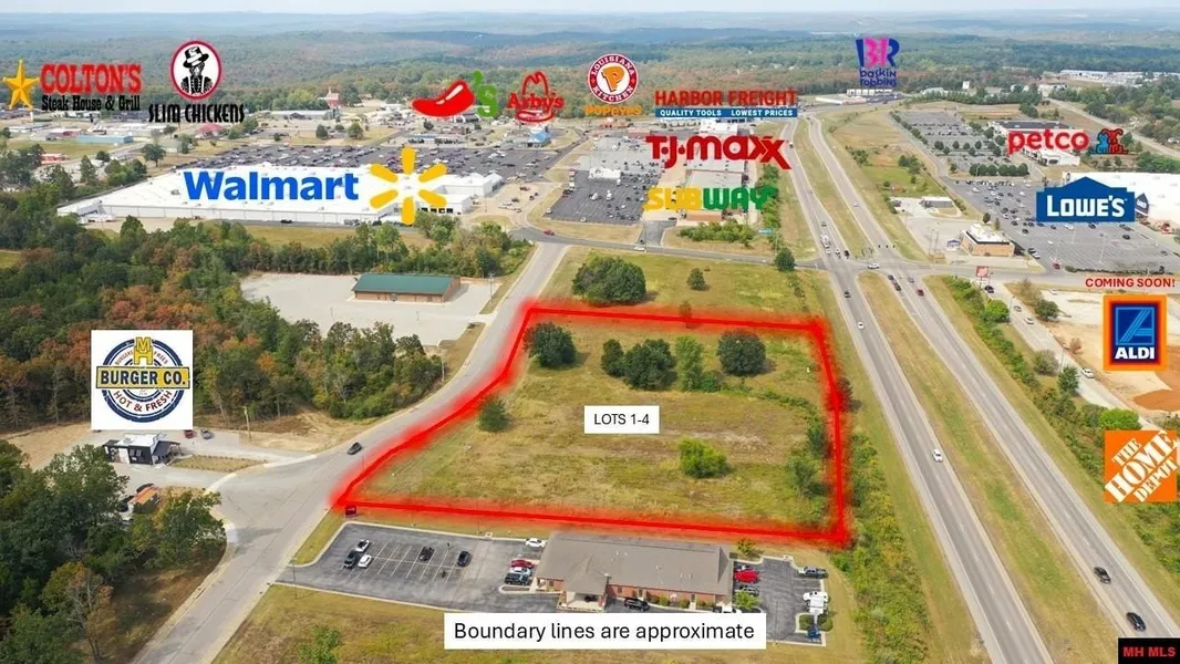 IDEAL COMMERCIAL LOCATION! 4.4 AC M/L with 534 Feet of Hwy 62/412 Bypass Frontage, 4 Commercial Lots, Zoned C-2, City Water, City Sewer, Electric at Property, Fiber Optics, Natural Gas Available, Cleared Lots, Mostly Level Lots. Wal-Mart, Home Depot, Lowes, TJ Maxx Nearby. Opportunities are Endless.