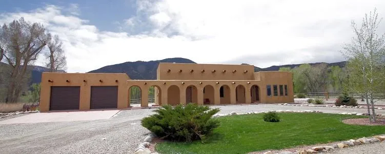 A unique lifestyle opportunity. Distinctive Southwest style home on 4+ acres of prime land bordering the South Arkansas River. Tall pines and mature trees shade green meadow areas. Landscaped drive leads to impressive 2944 SF home. Arched openings invite you to the front entrance. Once inside you'll be impressed by this home's kiva style fireplaces in the living area and master suite, and the log beamed ceilings. Artistic brickwork in the kitchen gives a home to a fireplace and cooking area. The dining room's curved wall of windows creates a panoramic view of the property and mountains. Beautiful tile work and art alcoves enhance the loveliness of this home's interior. Back patio is perfect for entertaining with its fire pit and postcard perfect views. 2-car garage & fenced area for horses.