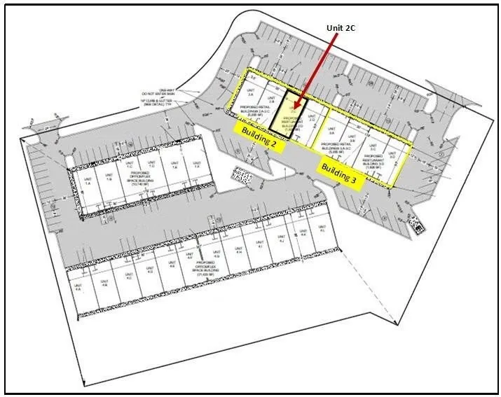 Center features 14,310 SF of retail with each unit ranging from 1,800 to a maximum of 7,155 SF. End units with drive thru option priced at $25/SF, NNN.
