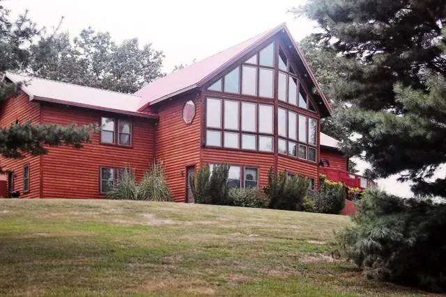 Stunning custom-built log 1.5 Story 4BR/4BA, oversized 3 car garage, Atrium Home w/4388 sq ft. of living space in park like setting on 4.43 ac.Geo-thermal heating & cooling system for very economical utility bills. Incredibly finished wood throughout, vaulted knotty pine ceilings, custom built country kitchen w/walk in pantry. Vaulted Greatroom has fp w/flr-to-ceiling stone. Master bdrm features a flr-to-ceiling stone fp & lux bath w/dbl sinks, whirlpool tub & sep shower. Sunroom looks out over the beautiful landscaping, custom built decking, waterfall & wildlife. The LL walkout offers a spacious LR w/fp, full bath, laundry hookup & kitchen overlooking the woods. Large 36' X 24' out building that has custom workshop, concrete floor, roll up door & overhead rolling hoist. Close by is a delightful 12' X 12' garden house with electric, & air conditioning. Great location just 1 hour from St. Louis county & about 1 hour to Mark Twain Lake. So much more, this home is a must see today!!!!!