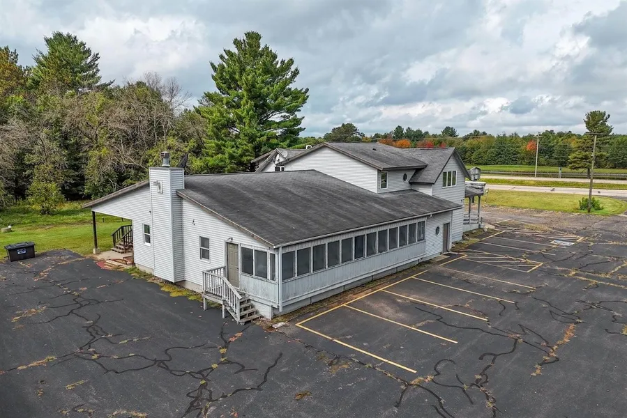 Unlock the potential of this unique 5,565 sq ft commercial building set on 4.46 acres with high-visibility frontage along Hwy 54/Plover Rd. Formerly the Highway 54 Family Restaurant, this well-maintained property offers a variety of use options, including hospitality, retail, storage, or redevelopment. The main structure features a spacious restaurant and bar layout with granite- topped bar, Ansul hoods, a screened dining porch, restrooms, and ample seating areas. The kitchen and interior underwent renovations around 2010 and 2014, offering a modern and functional commercial setup. A large shop/garage area and an abundance of parking space. Bonus Income Potential: Above the commercial space is a beautifully finished 3-bedroom, 2-bathroom apartment, offering supplemental income or on-site owner/operator housing. This residential space includes updated amenities and is a rare find for properties of this kind.