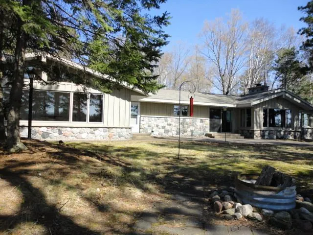 This home has it all! As you enter the property you will notice the abundance of privacy, circle driveway and a well maintained home with stone and wood siding.300' of sand, level frontage on Ike Walton Lake which is a 1,464 acre lake. The home offers 3 BR, 2 BA, with main level living. Open KT/DR and LR for entertaining of family and friends made easy. LR has a fieldstone wood burning fireplace with built in book shelves on both sides of the fireplace. Easy access from the DR through the large patio doors to the poured concrete patio. Master Bedroom faces the lake along with the KT, DR and LR. The Sunroom/Studio with gas fireplace and is light and bright and makes you feel as though you are sitting at the water's edge. Full basement for storage and mechanical,possible more living space but definitely a workshop and storage? 2 car attached garage, 1 car detached garage and a dry boathouse for all the storage of vehicles and toys. You will be mesmerized by the panoramic view.
