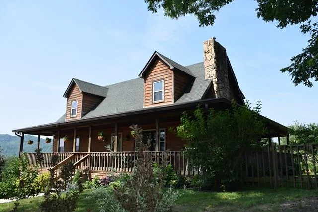 Cedar Sided Mountain Home in Grainger County TN: Sitting on hill top this 2 story with drive in basement 2514 finished square feet 3 bedroom 2 bath cedar sided home with wrap around porch, stone fireplace with wood stove insert, stainless steel appliances all this and sitting on 4.72 acres. Purchase price also includes a 14 X 60 single wide trailer in good condition, 2 Bedroom, 1 Bath, fenced back yard, fire pit, landscaped, trees great for the in-laws, extra income or guests. Private, several out buildings, mountain and seasonal Cherokee Lake views. Easy access to highway 25E and I-81, Cherokee Lake, major cities, towns and numerous East Tennessee attractions. Enjoy Country Style living 350,000.00. Latitude 36.348692, Longitude -83.301970