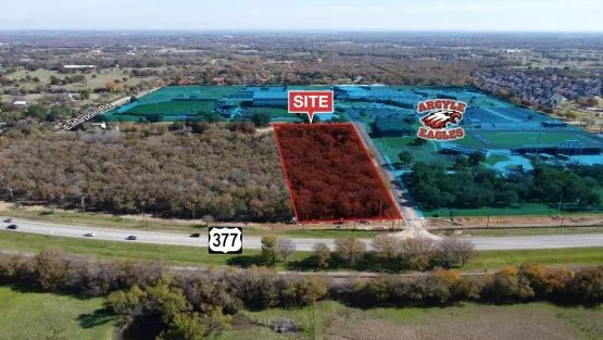 Owner financing available. INCREDIBLE LOCATION!! Highly-visible 5 Acres with approximately 250 feet of Frontage along Highway 377 in the heart of quickly developing Argyle. The explosive home growth, the country setting, the rural atmosphere within the DFW Metroplex, all contribute to Argyle being one of the hottest markets in the Metroplex. SE Village Center. Public utilities to the site. East side of Hwy 377 and also has shared Argyle Middle School road access (Eagle Drive). Zoned: Commercial. Owner is a TX licensed Realtor. Traffic Counts: Well over 35,000 vehicles per day., and growing! Excludes Mineral Rights. Will consider dividing the property.