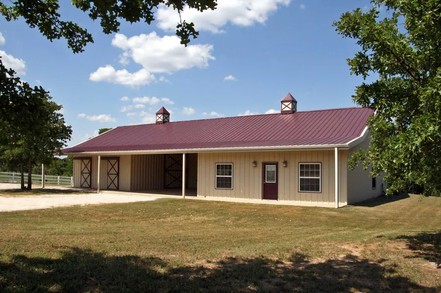 Located about 150 yards from the common area and covered arena in a peaceful cul-de-sac setting is 205 County Rd 1262. Sitting on 4.75 acres, it features an attractive house-barn combination that includes a nice residence and stable. The residence offers about 1,820 square feet of interior living space with an open floor-plan with vaulted ceiling shared by a spacious living area with stone fireplace, kitchen with granite counters and a dining area. There are 3 bedrooms, 2 full baths, an enclave with desk, a separate utility room and a large covered patio overlooking a heavily wooded area. Adjoining the residence is a large covered parking area that is wide and deep enough for crew-cab dually, which then leads to an adjoining stable area with 4-stalls. 2 stalls have rear doors that open to partially covered runs with access to a larger fenced pasture area. The soil for this area is a good sandy loam.