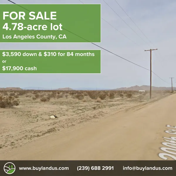 This expansive property offers endless possibilities for those seeking to build their dream home. Located in Palmdale, CA, enjoy a tranquil rural setting while remaining close to urban amenities. Take advantage of the natural beauty, nearby attractions, and affordable $17,900. Don't miss this excellent investment opportunity and Call us NOW!