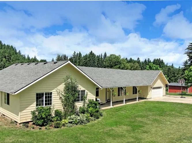 Desirable Country Home on 4.85 Private Acres... 4 Bedrooms, 3 Baths, 2265 Sq Ft. Vaulted Living Rm w/hdwd floor, ceil fan. Kitchen w/Pantry, Island, Range, Dishwasher, Double Sink, Disposal. Front/Back Sprinkler. Oversize Garage. Two 20x20 Barns, one features 2 stalls, loft & power. Chicken coop w/power. 3 pastures, 2 chicken areas. X-Fencing. 1500gal septic. 2 50gal H2O heaters.