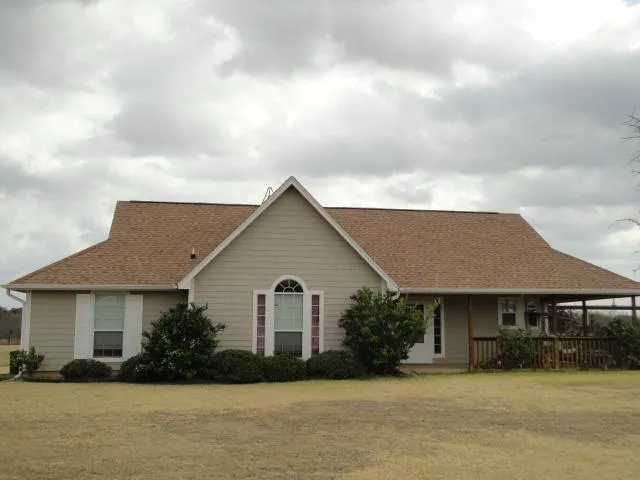 Very nice three (3) bedroom frame home with a covered porch on two (2) sides; Open concept den, dining and kitchen areas; The kitchen is seperated by a breakfast bar from the dining area; The spacious kitchen features a free-standing smooth top, electric cookstove, dishwasher, corner window over the sink and a walk-in pantry; The walk-through utility room adjoins the dining area and has a door that exits to the detached, three (3) car carport; Ceramic tile in the entry hall, kitchen, dining area, utility room and bathrooms; Carpet in the living room and bedrooms; The master bedroom has an adjoining bathroom with a garden tub, step-in shower, walk-in closet, double lavatory vanity and a private water closet; Two (2) other bedrooms share a hall bathroom; The large den has a French door that exits to a covered patio; A large chainlink dog run is located at the rear of the house; Located on 4.879 acres; Just minutes from town!