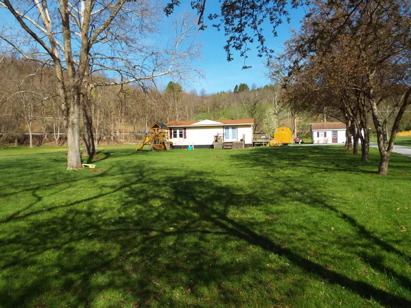 This totally renovated modular home sits on a manicured lot with mature trees and nice landscaping beside a crystal clear creek. The home is comfortable with a large Master Suite that has adjoining bath and vaulted ceilings with skylights. The paint, carpet and floor coverings are new. The Heat Pump is new as is the roof and the windows were recently replaced. The above ground pool stays with the property. There is a 6 bay shed for mowers and four wheelers and a 24 X 30 steel garage with two 9 x 12 roll up doors. Additionally there is a 16 x 39 room that was used in the family's catering business. The land is level and this is one of the most convenient locations in all of Tazewell. It is close shopping, schools, etc., but very private. The deck measures 22 x 32 so there's room to cook out and splash in the pool on hot Summer days. This property adjoins MLS 50449. Both properties can be purchased should additional housing be needed for $200,000.Total acreage in this offering is 4.89