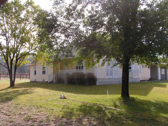 Sweet Country Living on 4.98 acres with 1700+/- sf 3 bedroom, 2 bath well-cared for ranch home. Covered decks, vaulted ceilings w/picture windows. Hardwood flrs, Breakfast bar, bay windows, pantry, laundry room, mud room. New carpet & paint & ready to move into. 3/4 Barn/garage 38x28' with 17x28' loft. Fenced, x-fenced, pond, creek, 9 irrig pipes, views & more views. Private area. Come see this!