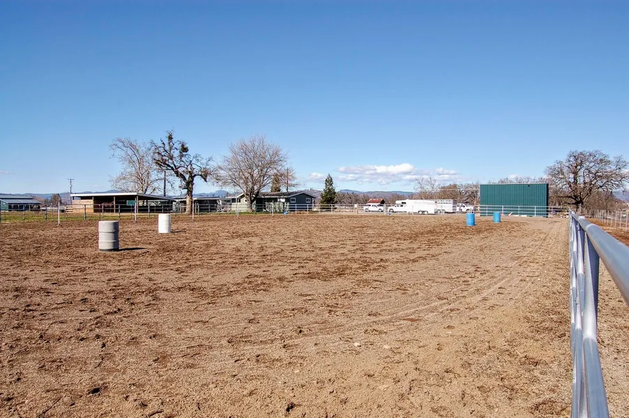Equestrian Property! Very clean ranch style home on 5+/- acres in Eagle Point, Oregon. 120’x200’ outdoor arena with competition footing. Great drainage for year round riding. The property is fenced and cross-fenced and there are multiple outbuildings including hay/equipment storage, horse cover (loafing shed) with stall, secondary horse cover, detached garage with storage and a canning shed. The property is level and offers great views. Easy access for vehicles with trailers and a large area for parking. Situated as a corner lot, there are a total of three access points from paved roads. The home is 1242 sq. ft. with a remodeled kitchen, indoor laundry, mud room and 3 bedrooms. The home is connected to a public sewer system (RVS). Irrigation available from Rogue River Irrigation Dist. Home also features an outdoor kitchen. Bring your horses and enjoy all that this property has to offer.