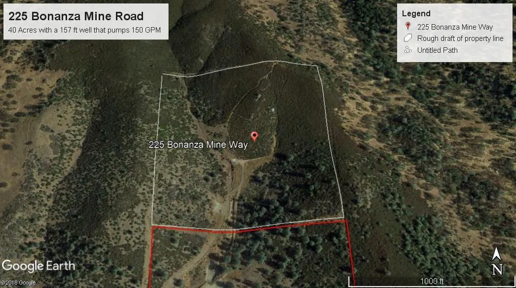 This 40 Acre piece of property sits just four miles from Copperopolis. Is has a well on the property that is 157' deep and it pumps 150 GPM. New owners will have to continue to get easement from BLM which renews every few years. Owner is a licensed broker but is not representing her self. Also see 201 Bonanza Mine Way listing.