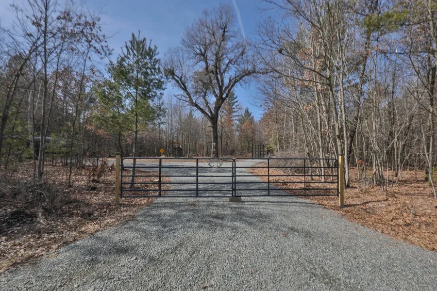 The estate is located 15-minutes south of Neillsville. While electric is not accessible, those who wish to haul a camper onto the land and plug-in a generator or set up solar will suffice. A newly added gated entrance leads to a well-groomed basecamp site with tons of newly fresh gravel added to the camp site. A metal storage container provides safekeeping for your valuables with an outhouse and custom deer pole. Multiple trail systems meander throughout the property for hiking, hunting and joyriding. Several treestands were strategically placed in hunting hotspots along with newly-built bases for gun blinds.