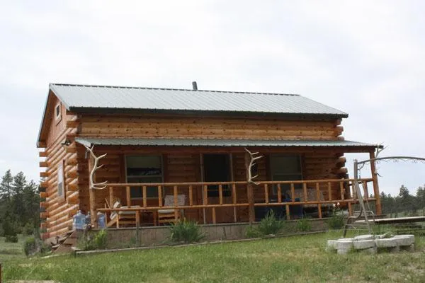 Cabin at end of road next to BLM land. Power from solar, wind generator, propane. 1,000 gal cistern for water. Bathroom has shower and composting toilet. Small kitchen and living area. Upstairs sleeps 4. Covered front porch for enjoying the country view and wildlife.