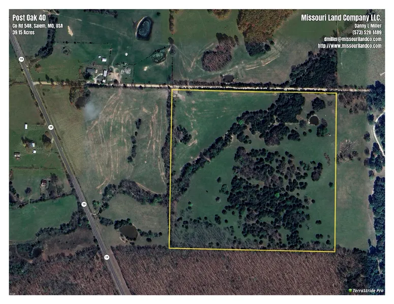Post Oak 40 is a good mix of open and timber land located nine miles south of Salem and only one quarter mile off Highway 19. The property could serve as a hobby farm or your getaway from the hustle and bustle of city life for outdoor recreation and solitude.A wet weather creek crosses the property and a stock pond in the northeast corner of the tract will provide water for your livestock. For the hunter, Deer and turkey harvest won&t be a problem as I watched a hen and her brood of six or eight poults run and hide as I walked the property.If you are looking for a place to build a home or weekend cabin, this tract is level to gently sloping and there are many very good sites for a building on the property.&At the property you will be only eighteen miles from Akers Ferry on the Current River for floating and smallmouth bass fishing and twenty miles from Montauk State Park for all you trout fishermen and women.&&