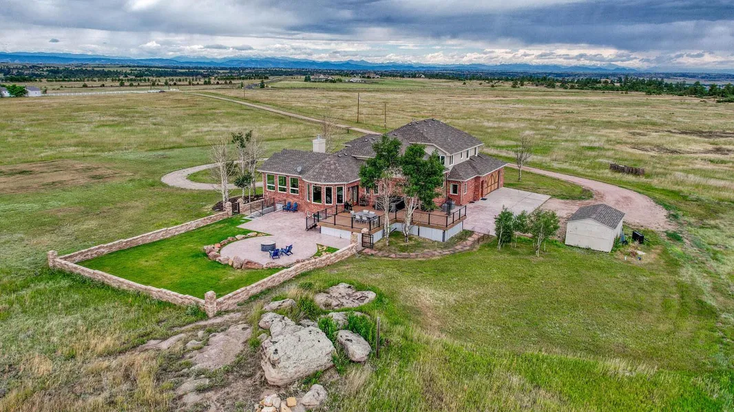Holler Glenn consists of two homes, with two wells and aquifer rights on 40 acres with spectacular views of the entire Front Range Mountains. The acreage consists of beautiful native rangeland that is idea for an equestrian operation or simply to have a few livestock. The main home sits a mile away from the two-lane State Highway 83, behind a gated entry and the smaller home sits near the entry off of State Hwy 83. There is no HOA. The stunning main home consists of 5,700 square feet with 5 bedrooms and 5 baths. The lower level has a fantastic and spacious entertainment room with a full kitchen, theatre area, steam room, dry sauna, additional laundry room, all with a walkout entrance. The second house has been updated and would be perfect for a guest house, short term rental or caretaker home.