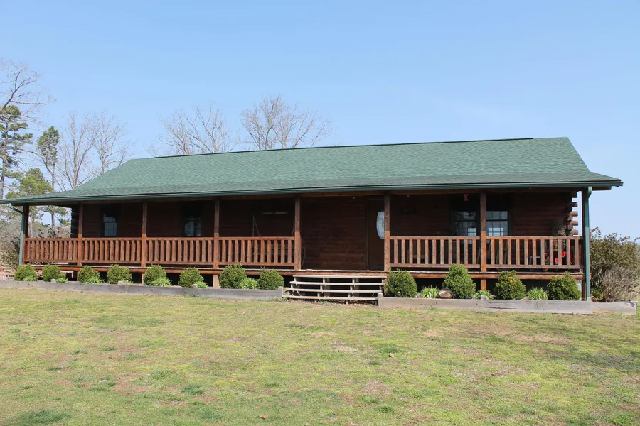 This ranch style log home was custom built with the modern family in mind. It has 4 bedrooms and 3 bathrooms and the open floor plan is great for the entire family to enjoy with a spacious family room, kitchen, and dining room. The dining area has French Doors that will lead you out to an incredible Fully Covered back porch with a multi-level deck and pool area. The home also has a Fully Covered front porch, a large Master Suite with Jacuzzi Tub, Full Basement with 2 bedrooms and game room, outbuildings and an un-believable 40 acres.