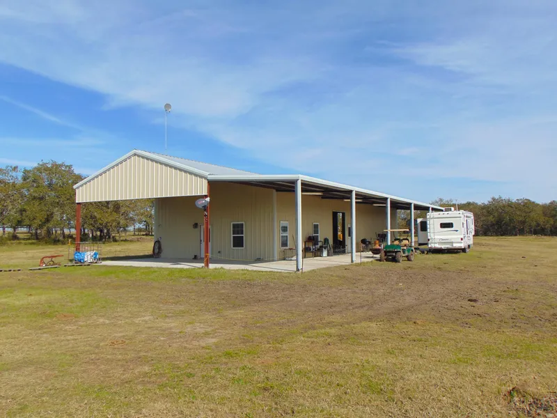 The ranch has a 4600 square foot barndominium structure which was built in 2014 with an approximately 1,140sqft 1 bedroom 1 bath living area which was built in July of 2018, a 2000 sqft shop (with space to add on to the living area) and about 1480 sqft in porches.