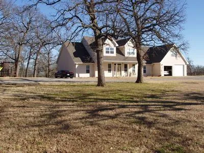 Beautiful treed hilltop setting in quiet area east of Denison on 40 rolling acres. Constructed in 2005, this custom 4/3/2 stucco home features a gourmet kitchen with island, double oven, and solid Cherry wood cabinets. There is a sunroom and 4 zones of HVAC. Home is engineered for low maintenance and long life with extreme energy efficiency. Acreage consists of good coastal Bermuda pastures, 2 ponds and a 60X50' steel workshop/equipment barn. There is one water and a 2400SF guest house. 75 add'l acres also available.