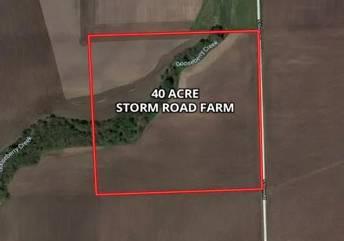 The parcel is relatively flat, high quality farmland. Productivity Index of 131. Excellent yield history and good fertility levels. Excellent frontage on the Storm Road only three miles south of Gardner. Nice combination farm with creek and timber for potential hunting and very good tillable farmland.