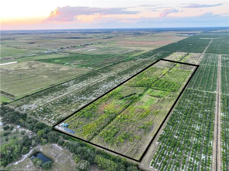 40+/- acres just across the line from Sebring in Lorida, Florida for $11,450 an acre, including all of the on-site improvements. The property is towards the end of Arbuckle Rd, take a left onto Bishop Dairy Rd, and go right where the pavement ends. The property is at the end of the orange grove at the gate and has many improvements. The property features a powered 24 x 28 Ag barn with multiple doors for equipment storage. The property has an 8 foot deep well with a 10 HP electric pump powered by 60400-Watt grid-tied solar panels. Panels have been producing excess power monthly, which results in payment from the power company! Zoned irrigation is run to all 40 acres with 23 acres having poly tubing with microjet emitters installed. The irrigation system also features a dual fertigation system for fertilizer distribution and an acid injection system to regulate the pH of the irrigation water. The irrigation is fully automated and can be monitored and controlled via a phone app. There is also a Davis Weather station with a 3 moisture probe that can also be monitored via a phone app. Also included in the sale is a 2012 Open Range Residential Model 412RSS 5th wheel camper. It features a full stand-up shower with a residential tankless hot water heater in the garage, a residential sized refrigerator/freezer, a king size purple brand memory foam mattress, dual air conditioners, new luxury vinyl plank flooring in the lower level, and two televisions. The property consists of 4 10-acre parcels being sold together for a total of 40-acres agriculture land PLUS IMPROVEMENTS. This property is perfect for agriculture and could also be subdivided into 5-acre ranchettes according to Highlands County zoning department. Also available is the back 20 acres, see MLS #295343
