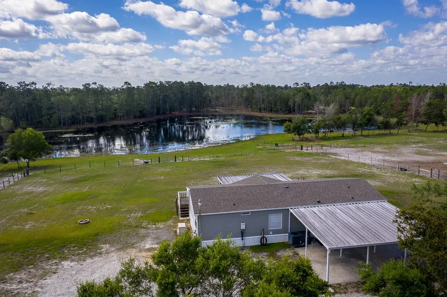This Agriculturally-zoned 40 acres and country home with a solid mix of pasture, woods, and water is set on rolling hills bordering Seminole State Forest just minutes from downtown Deland, Eustis and Mount Dora. Currently farmed with an assortment of animals including cows, chickens, llamas and turkeys, this square-shaped parcel at the end of the road is fenced and cross-fenced throughout and includes seven pastures, each with water supply. Covered stalls, paddock and corrals, four chicken coops, two large storage sheds, covered storage areas, and a 1,500 square-foot workshop on a slab are also included. Fruits include blueberries, blackberries, citrus, persimmon, peach, fig and many more. The split-plan 3/2 manufactured home in excellent condition overlooks the water and includes a newer roof, fenced back yard, instant hot water heater, lightening arrestor, whole-house propane generator, newer stainless-steel appliances, and a 24 X 14 screened porch and open deck to stargaze, watch the farm animals or wildlife. The new Wekiva Parkway makes the Orlando commute a breeze! All measurements are approximate and should be independently verified.