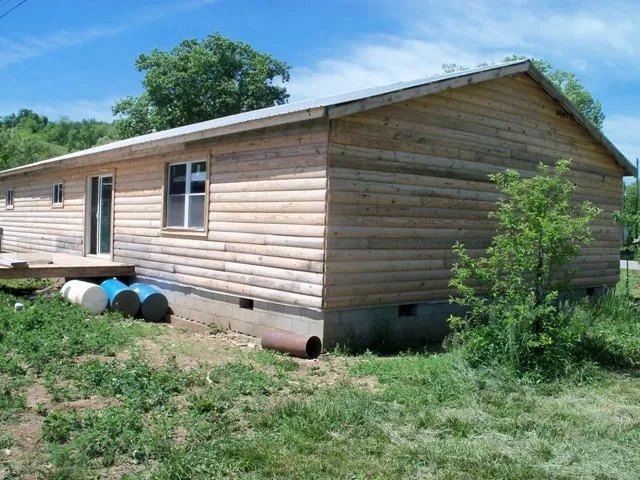 40+/- acres of farmland that lays rolling with a flowing creek, 1 wood sided barn with horse stalls, and 1 metal barn with living quarters, electric, water and lean-to, 1 car block garage and a one story unfinished home that has log siding and a metal roof. This home has been wired, plumbed and sheet rocked so you can finish as you like. It has 3 bedrooms and 2 bathrooms. Call an agent today for more information.