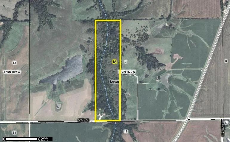 40 Acres m/l on the North Side of Lucas County, Iowa with living quarters and 2 nice outbuildings. Approx. 45 minutes from Des Moines. The land is approx.. 1/2 mile from north to south. Farm consists of creek, hardwood timber including walnuts, brush and bushes (thick, thick cover) open areas for food plots. Farm is a nature path for deer travel to get to the neighbors farm field. Tons a deer signs, large bucks taken on the farm and in the area, this is the place they live. If you are looking for the small farm that has plenty of opportunities to get that large Iowa Buck then you need to look at this farm.