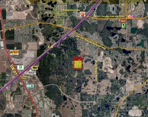This property is located only 7 miles from I-4 at Exit 60, which is a main entrance to Walt Disney World and less than 2 miles from the ChampionsGate Resort. There are several new housing developments adjacent to the subject property The upland acres contain a citrus grove. The proposed Central Polk Parkway is planned to go through the property.